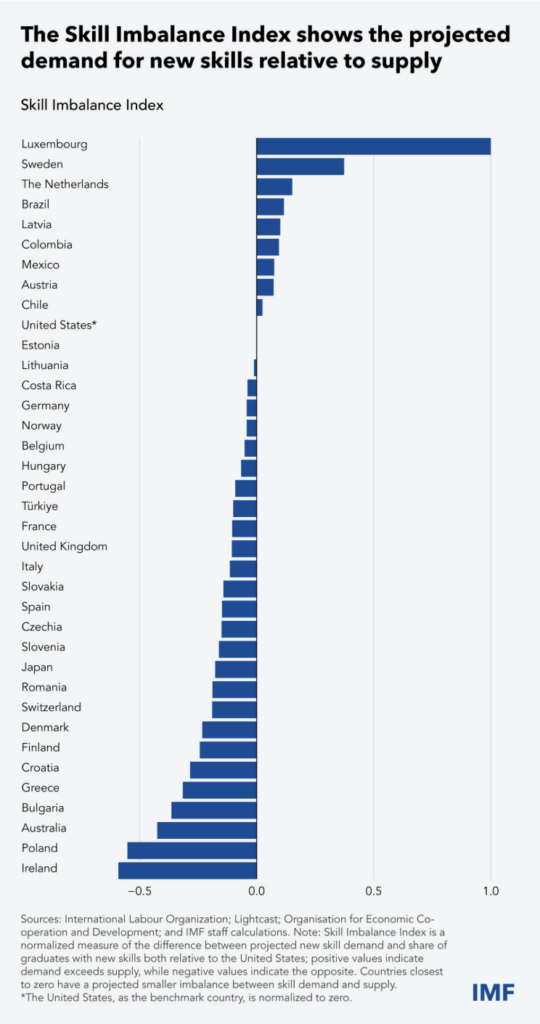 Parallel, they pushed for an imbalance index to show which countries have the most lack of new skills versus what is delivered from the market.