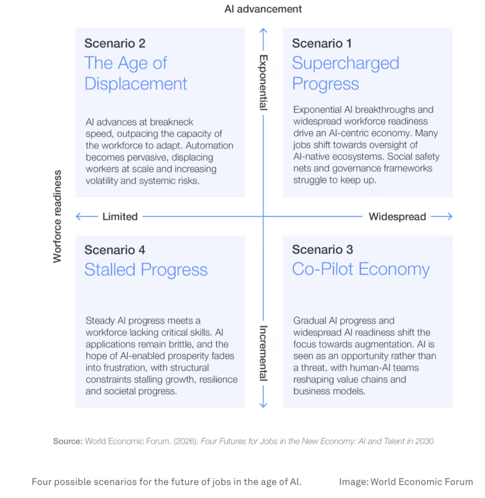 I mentioned in the section on Markets in Chipsets about the fact that AI can be accessible to some countries capable of investing more in innovation, rather than others, creating a partitioning of access to innovation. For this reason, I already mentioned last year my concern about an AI competence polarization, in terms of companies and countries that can have access to it widely. A few years ago, I was considering energy and its production as a limit to access to technology development, but we saw that sovereignty has put another variable in the meantime. Recently, WEF 2026 mentioned exactly the risk that an AI not properly developed across different countries can pose in terms of wealth distribution. I will go more into the section on Workforce Transformation about this.