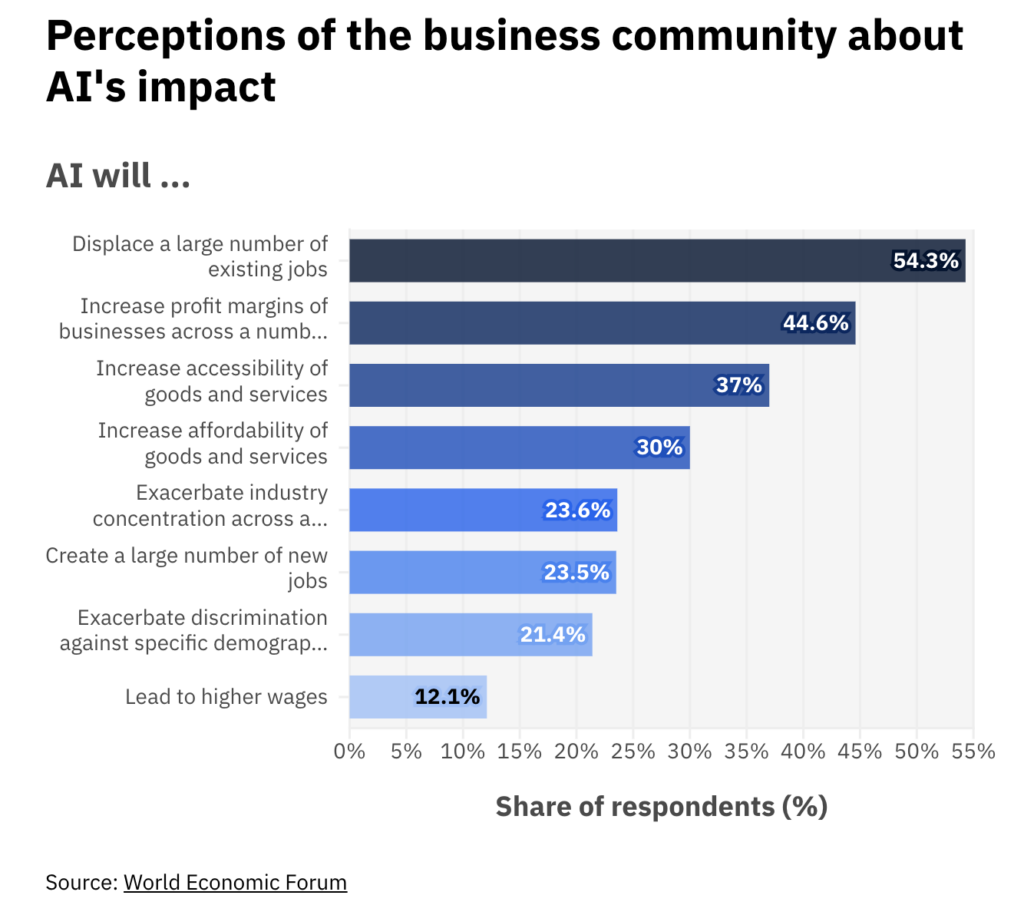 Looking at what the most impactful effects of AI are, that indicated most a big concern for job displacement that can be a clear threat to the up-skilling of resources.