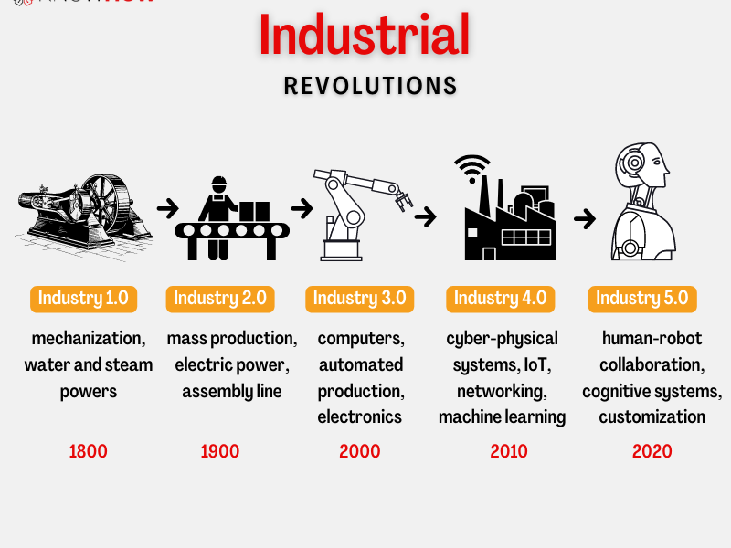 • There is a proliferation of human-like robot developments with a short timeline to market from different vendors (from China, Europe, US). It seems that the trend is going to accelerate, and the aim is to assist in home daily tasks and industrial activities, accelerating the concept of Industry 5.0 (image below)