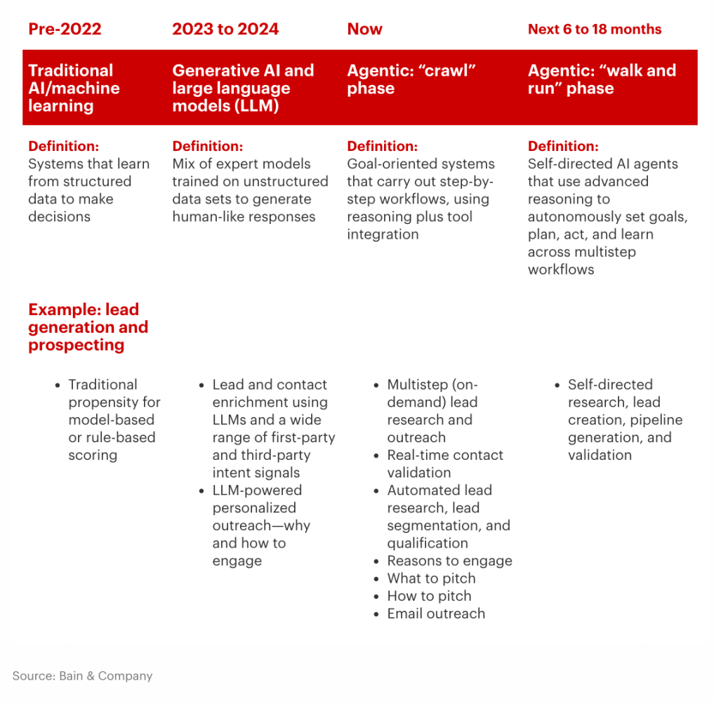 Bain made an interesting analysis that the AI in sales is not yet bringing a proper scale of efficiency, most probably linked to the number of activities executed by a sales agent, data cleaning aspects, and processes that are not highly standardized end-to-end. In that analysis, the trend of Agentic increase is also considered, and how it is tackling the sales process improvement. As this is something that we will remember from the WEF 25 in terms of workforce change, the Sales organizations were seen as changing considerably in the future years. I believe it is relevant to pay attention to such cases of analysis.